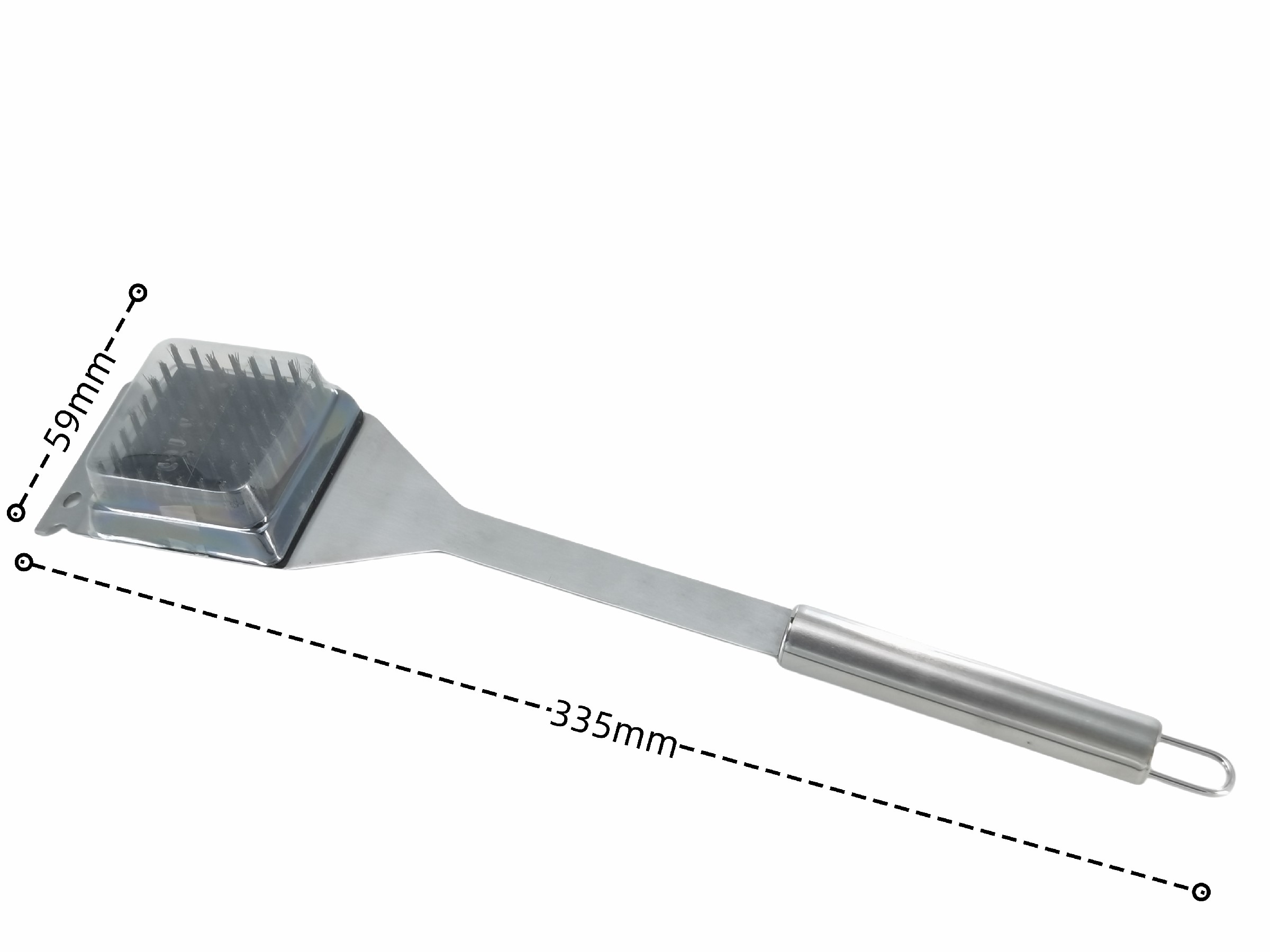 The relatively small dimensions of the BBQ-set make it fit comfortably in your hand and it can be taken outside easily.The matte finish of the steel completes the total picture.