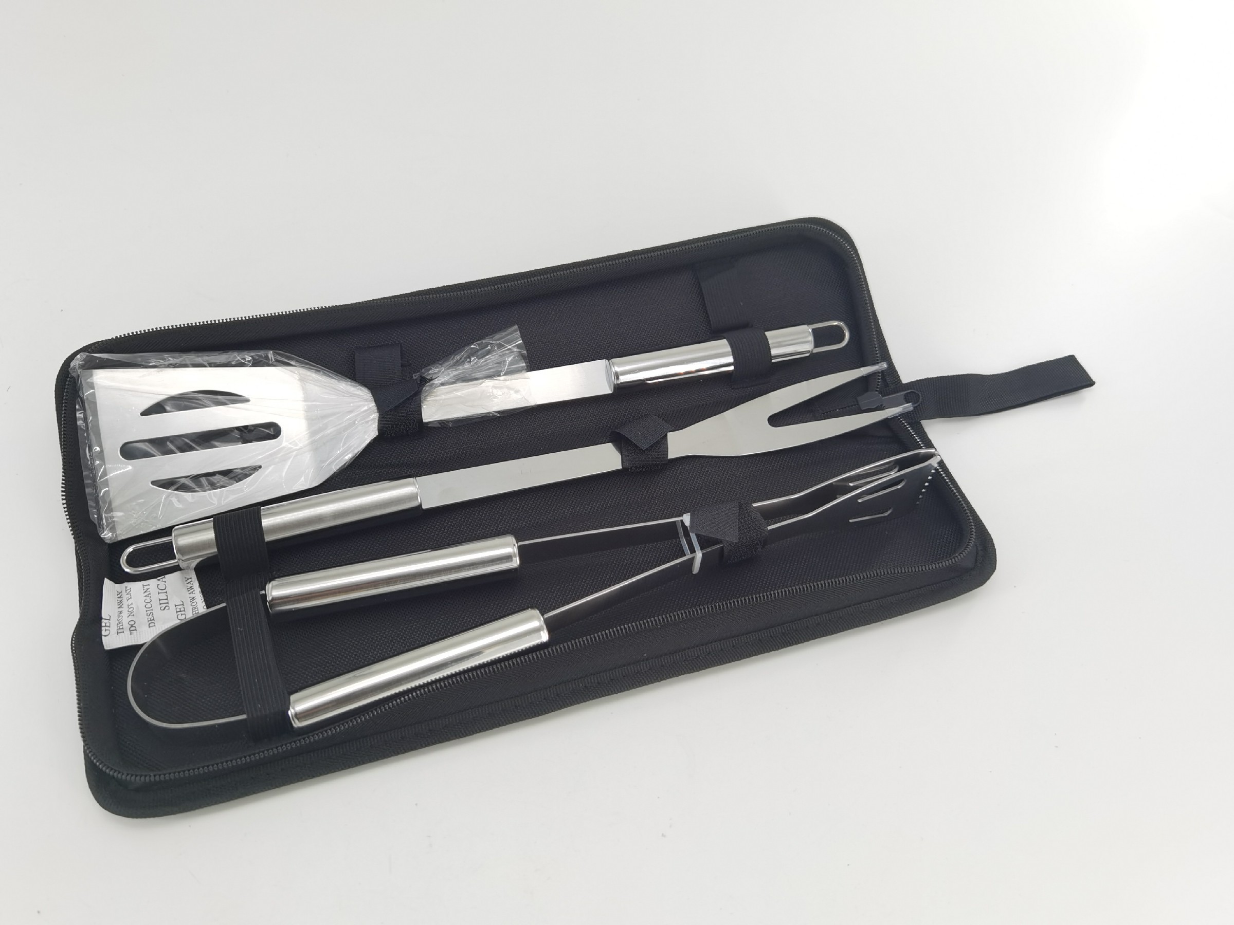 The relatively small dimensions of the BBQ-set make it fit comfortably in your hand and it can be taken outside easily.The matte finish of the steel completes the total picture.